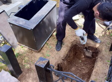 Глубина ямы точно соответствовала высоте нового саркофага, а потому наземное покрытие, которое мы положим в дальнейшем, будет смотреться ровно и без ощутимых перепадов.